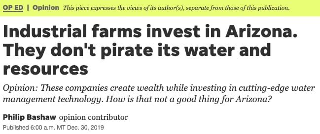 It may not be surprising that the Farm Bureau has not sought feedback from stakeholders in the Ranegras Plain Basin, given Bashaw’s public support for Fondomonte and other foreign and out-of-state agricultural producers in Arizona.