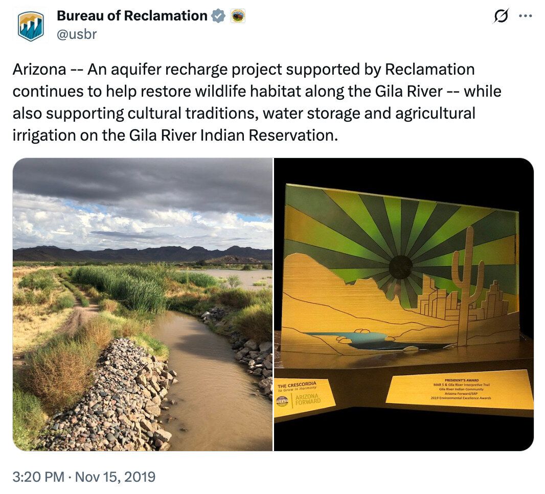 In this case, the Bureau of Reclamation generated storage credits by recharging treated effluent to the Lower Santa Cruz River Managed Underground Storage Project.
