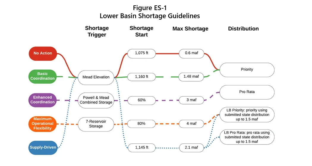 It lays out annual cuts of up to about 1.5 million acre feet in the Lower Basin, depending on the hydrology of the river that year, with almost 80% of those cuts coming from Arizona.