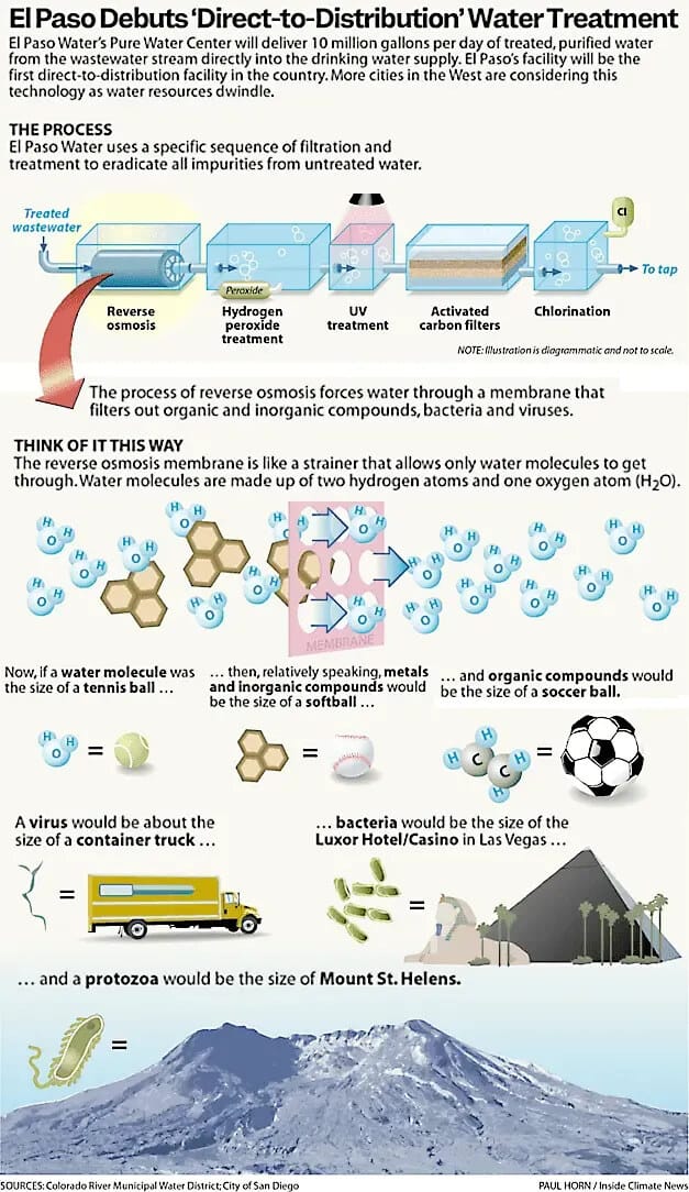 Another strategy will be the refrain “this technology isn’t new,” which is a half-truth. The individual purification technologies are nothing new, but putting them together to treat sewage water for potable use is pretty darn new.